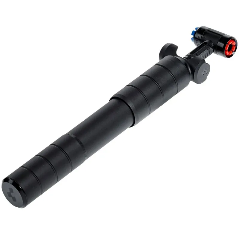 Cnc-machined pump for high volume, ez-head for presta and schrader valves, retractable hose, handle locking, including bracket, 80 psi max